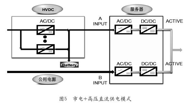 當ICT設備具有冗余的電源模塊時,可采用交流和直流兩路混合供電技術,在大部分時間由市電供電,從而獲得更高的效率。
