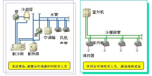 VRV空調(diào)比水冷機組約貴8%,比傳統(tǒng)風冷熱泵機組約貴11.5%(注:價格中未考慮冷水機組需要水泵機房和空調(diào)箱占用空間所造成的大樓經(jīng)濟效益的損失)。但是年運行費用可以節(jié)約40~50%以上;同時,使用VRV空調(diào)可以節(jié)約年維修費用70%;無需專門的空調(diào)管理人員;當然如果整幢大樓采用VRV+I-manager樓宇自控系統(tǒng)更可以節(jié)約大筆的自控系統(tǒng)初投資.