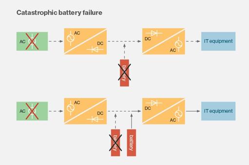 所有UPS系統(tǒng)都需要兩組電池串來防止在其中一組出現(xiàn)故障時出現(xiàn)災(zāi)難性故障。