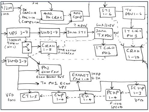 解鎖真正預(yù)測數(shù)據(jù)中心的成本和能源的能力,DCIM應(yīng)該能夠提供對未來的預(yù)測,讓數(shù)據(jù)中心運營商知道數(shù)據(jù)中心不同的負載和溫度條件下的反應(yīng),以及跟蹤項目的主要設(shè)施的利用能力。這一個方法是通過性能模型體現(xiàn)的,其中包括在電力和冷卻鏈的主要機械和電氣基礎(chǔ)設(shè)施(見圖4)。該模型取代了以前繁重的手工構(gòu)造的模型(見圖1)。