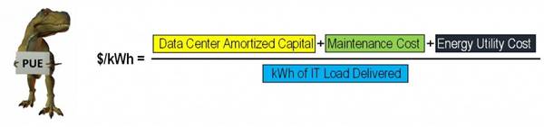 圖6(c)根據(jù)他們的活動模型,為每一個客戶分配美元/千瓦時。“數(shù)據(jù)中心交付成本”是報告的成本效益真實的方式,可能比PUE對于高級管理層更有意義。例如,在第一個新數(shù)據(jù)中心的第一個兩到三年的壽命中,資本成本分量起支配作用不管PUE和運行效率。
