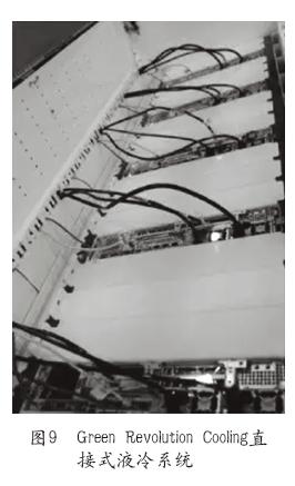 IBM的新SuperMUC超級計算機中心(LRZ)Super MUC與IBM xiData Plex均采用了水冷技術(shù),即采用40℃的溫水作為IT設(shè)備制冷的冷媒工質(zhì)。比起普通的風冷系統(tǒng),這種水冷系統(tǒng)的散熱效率高4000倍,能耗也大幅度降低。除此之外,其產(chǎn)生的熱水可以給萊布尼茲超級計算機中心園區(qū)的其他生活建筑供熱,每年可節(jié)約125萬美元。IBM間接液冷服務(wù)器如圖8所示。
