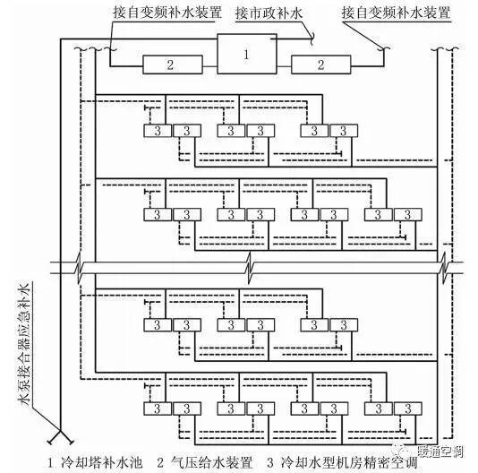 該工程數(shù)據(jù)機(jī)房機(jī)房空調(diào)系統(tǒng)采用N+N的原則設(shè)置,空調(diào)水系統(tǒng)采用2N形式,滿足系統(tǒng)可靠性的要求。