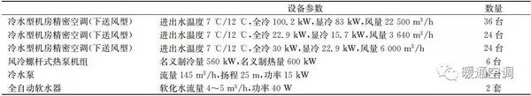 3)方案2:數(shù)據(jù)機(jī)房設(shè)置冷水型恒溫恒濕機(jī)房專用空調(diào),冷水由風(fēng)冷螺桿式熱泵機(jī)組制備。方案2主要設(shè)備見表4。