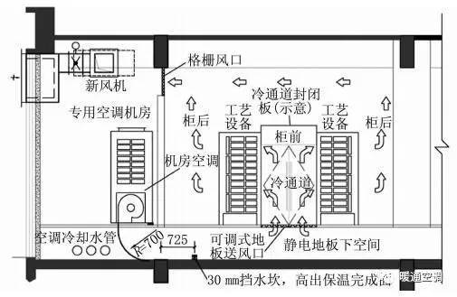 圖4 數(shù)據(jù)機(jī)房空調(diào)氣流組織示意