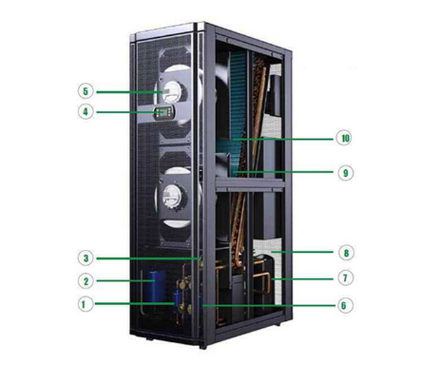 因?yàn)闊嵩?,空調(diào)的回風(fēng)溫度高,使得其能效比好,目前行間空調(diào)有風(fēng)冷和冷凍水兩種形式,風(fēng)冷的壓縮機(jī)多采用變?nèi)萘康臄?shù)碼渦旋壓縮機(jī),風(fēng)機(jī)采用EC風(fēng)機(jī),整機(jī)可以根據(jù)通道內(nèi)的熱負(fù)載調(diào)節(jié)制冷能力輸出,行間空調(diào)用于封閉冷熱通道的場(chǎng)合!