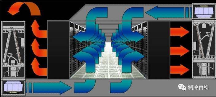 (3)不論是下送風(fēng)方式還是上送風(fēng)方式,都很難使得空調(diào)送出的氣流在機(jī)房?jī)?nèi)根據(jù)機(jī)柜的發(fā)熱量不同而合理分布,這就是高熱量機(jī)柜出現(xiàn)后機(jī)房局部過熱的原因。