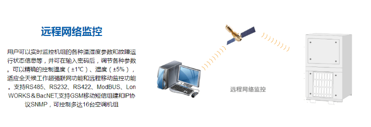 用戶可以實(shí)時監(jiān)控機(jī)組的各種溫濕度參數(shù)和故障運(yùn)行狀態(tài)信息等,并可在輸入密碼后調(diào)節(jié)各種參數(shù)。可以精確的控制溫度(±1℃)、濕度(±5%),適合全天候工作。強(qiáng)大聯(lián)網(wǎng)功能和遠(yuǎn)程移動監(jiān)控功能。支持RS485、RS232、RS422、ModBUS、LonWORKS&BacNET,支持GSM移動短信組建和IP協(xié)議SNMP,可控制多達(dá)16臺空調(diào)機(jī)組。