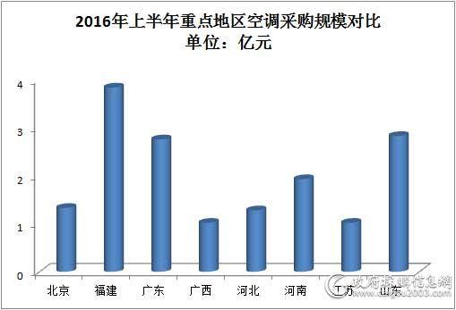 2016年上半年,我國(guó)各地空調(diào)公開(kāi)招標(biāo)采購(gòu)規(guī)模達(dá)25億元,其中福建采購(gòu)規(guī)模居首位。